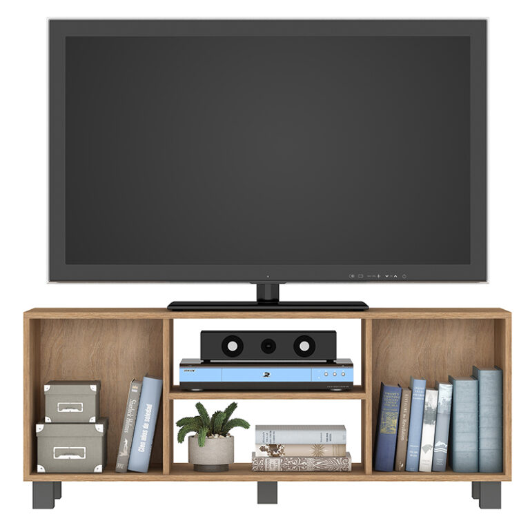 Rack Portugal con estructura y cubierta en MDP. Este rack está pensado para organizar el espacio de tu living de la mejor manera, pero siempre agregandole un estilo interesante a tu hogar.