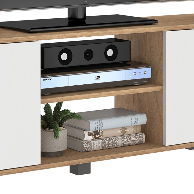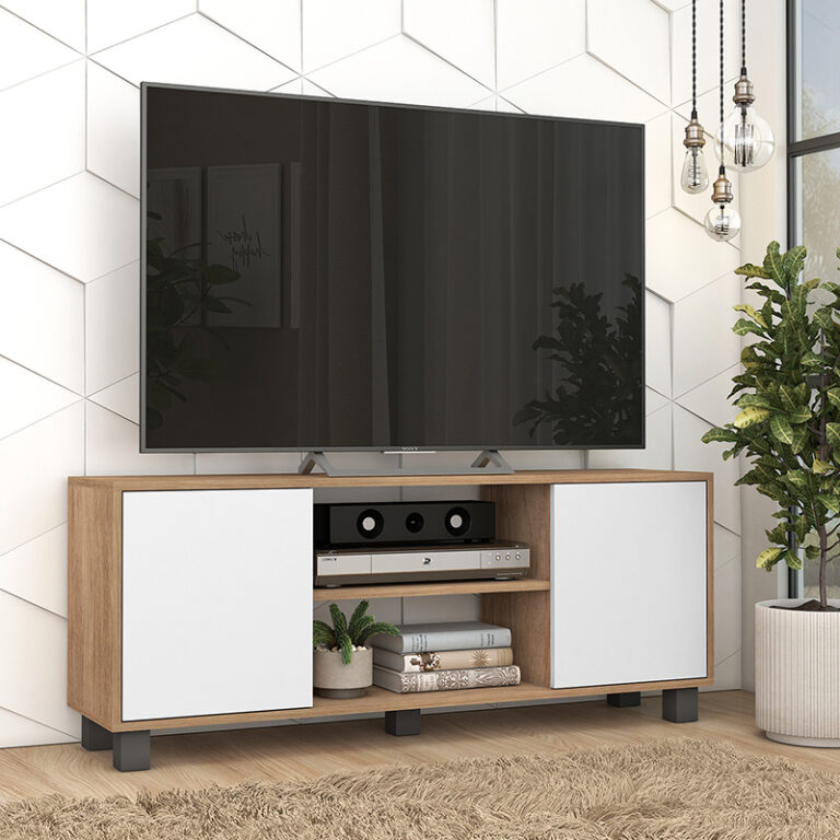 Rack Portugal con estructura y cubierta en MDP. Este rack está pensado para organizar el espacio de tu living de la mejor manera, pero siempre agregandole un estilo interesante a tu hogar.