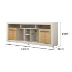 Con un ancho de 163 cm, este rack se adapta a cualquier espacio, ya sea en una sala de estar amplia o en un apartamento más pequeño. Aunque no cuenta con ruedas, su diseño compacto te permite moverlo fácilmente si necesitas reorganizar tu sala.