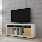 Con sus 2 puertas y 9 estantes, tendrás espacio más que suficiente para organizar tus dispositivos electrónicos, películas, libros y otros objetos decorativos. Además, cuenta con un compartimento especial para parlantes, permitiéndote disfrutar de un sonido envolvente mientras ves tus programas favoritos.