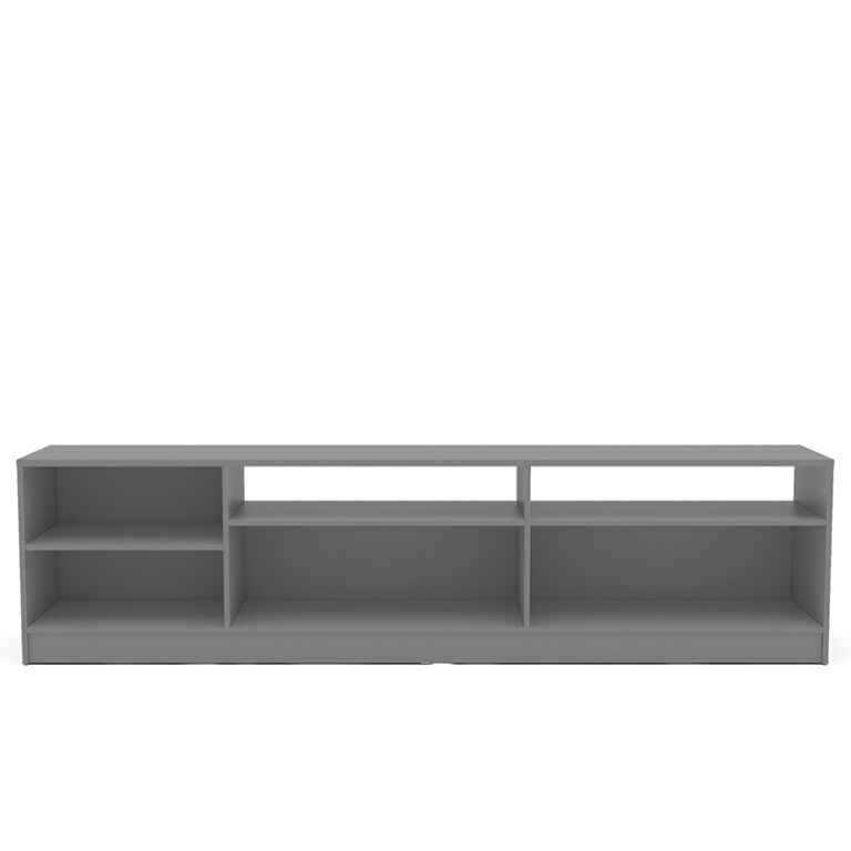Con un ancho de 180 cm, este rack ofrece un amplio espacio para colocar tu televisor y otros elementos audiovisuales. Además, no cuenta con ruedas, lo que garantiza su estabilidad y seguridad.