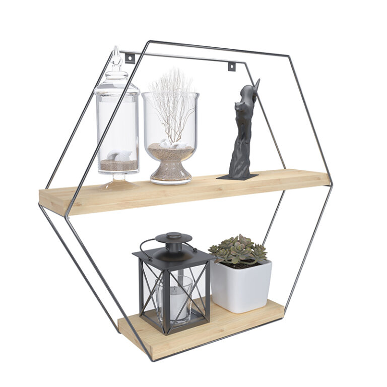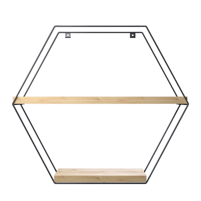 La Repisa Hexagonal Vekka es el complemento perfecto para tu hogar. Con un diseño moderno y elegante, esta repisa flotante de 45 cm de largo y 40 cm de altura se adapta a cualquier estilo de decoración. Fabricada con materiales de alta calidad como MDF y acero, garantiza resistencia y durabilidad.