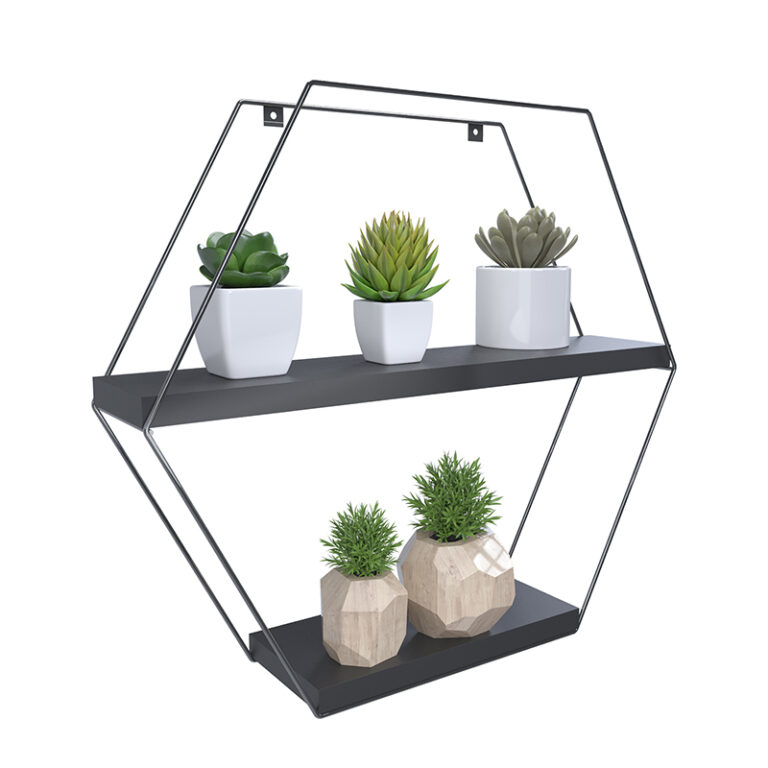 Su espesor de 15 mm le brinda estabilidad y seguridad, mientras que su profundidad de 10 cm permite colocar objetos decorativos, libros o cualquier otro artĆculo que desees exhibir. AdemĆ”s, su modelo hexagonal le da un toque Ćŗnico y original a cualquier espacio.