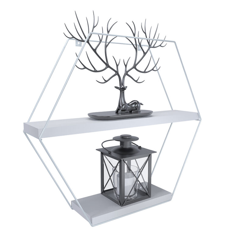 Su espesor de 15 mm le brinda estabilidad y seguridad, mientras que su profundidad de 10 cm permite colocar objetos decorativos, libros o cualquier otro artículo que desees exhibir. AdemÔs, su modelo hexagonal le da un toque único y original a cualquier espacio.