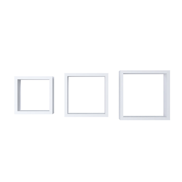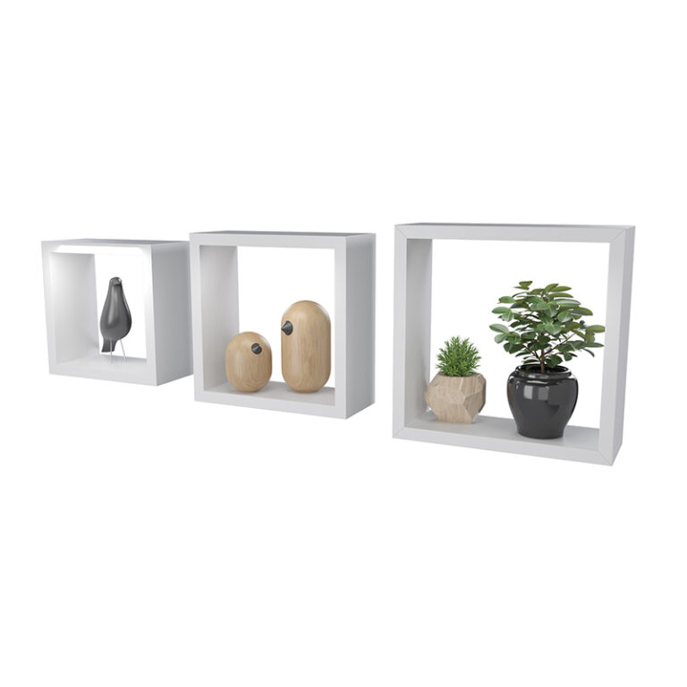 Fabricadas en MDF con un acabado mate, las repisas flotantes de melamina de VEKKA son resistentes y duraderas, soportando un peso máximo de 7 kg. Su diseño de estante tipo cubo de 25×25 cm, 20x20cm y el ultimo cubo por 15x15cm se adapta a cualquier ambiente, ya sea en la sala, dormitorio o estudio, añadiendo un toque de sofisticación.