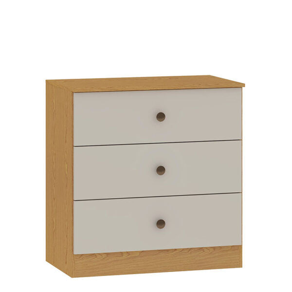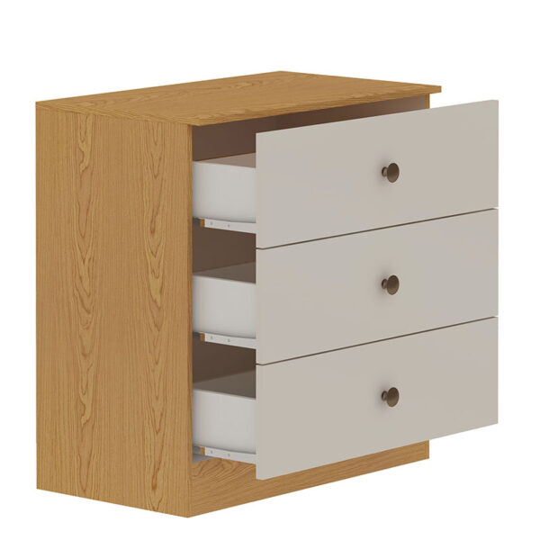 La cómoda incluye 3 cajones amplios, perfectos para ropa interior, poleras, accesorios o artículos personales.