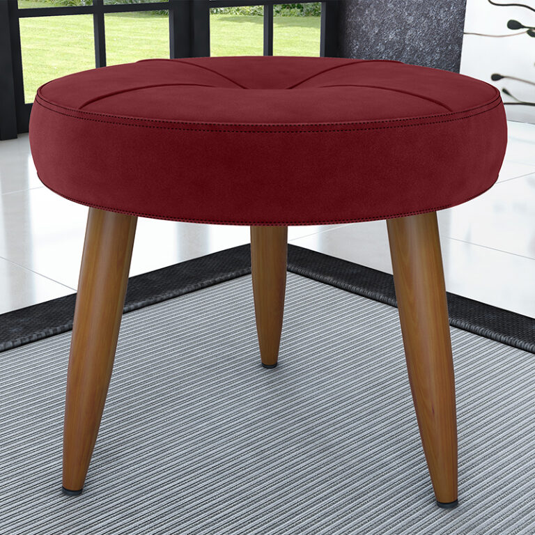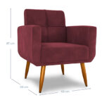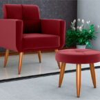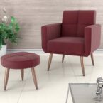 Set de una poltrona y un pouf. La estructura de ambos es de madera, esta se encuentra acolchada con espuma y tapizada de tela color burdeo con patas de madera. Gracias a su diseño moderno, es un set que se integrará perfecto a tu living o a cualquier espacio de tu hogar.