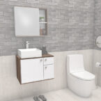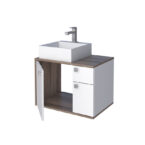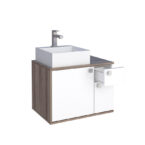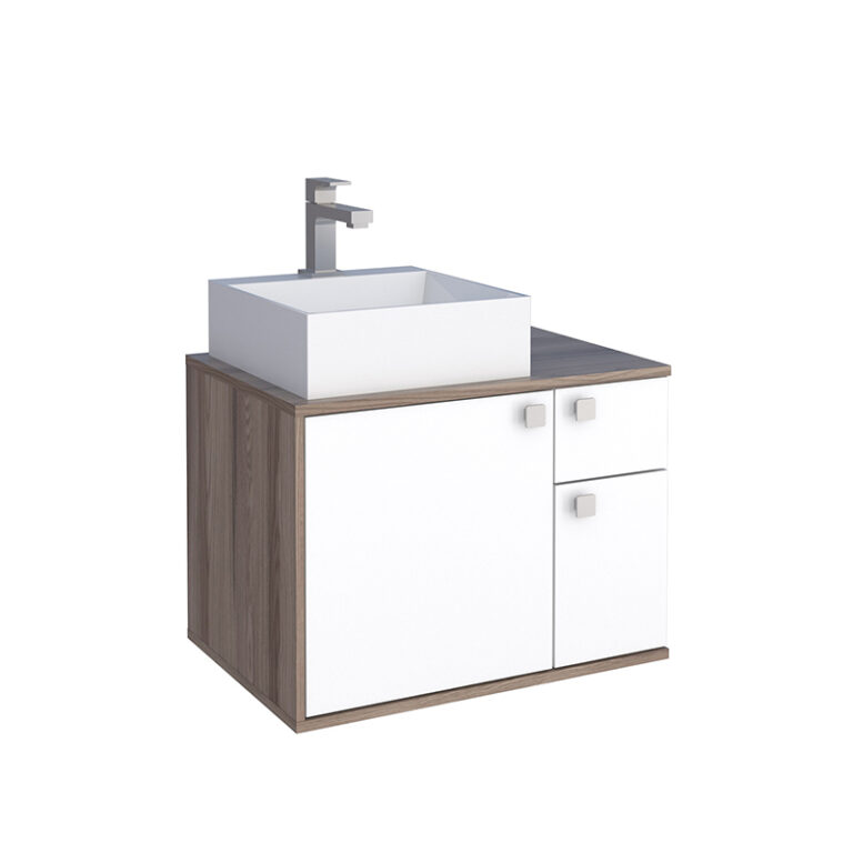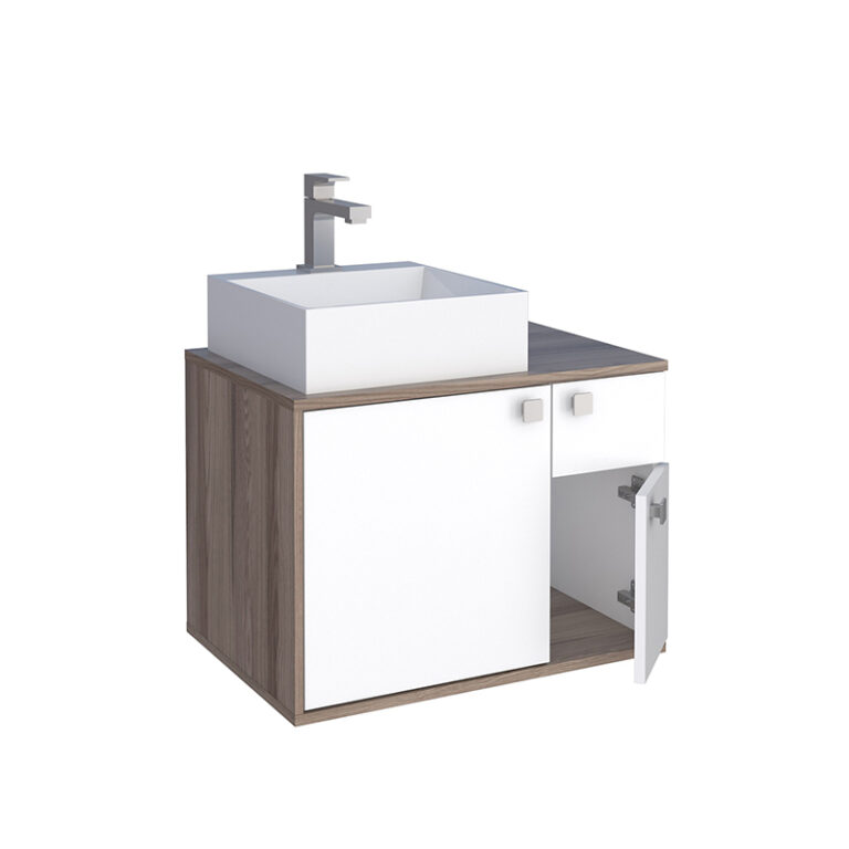 Mueble aereo para baño CAETE blanco tamarindo con lavamanos PRISMA de sobreponer en mármol sintético y puertas con cierre lento*NO INCLUYE GRIFERIA
