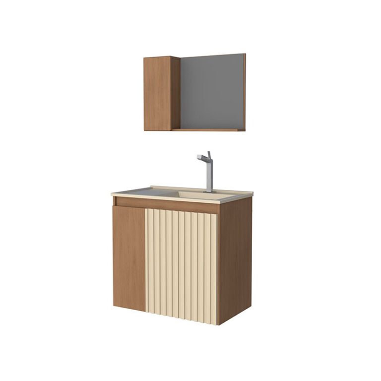 Mueble para BaƱo Camomila con Espejo y Lavamanos, Puerta Con Detalle en Listones, Cajones Con Correderas