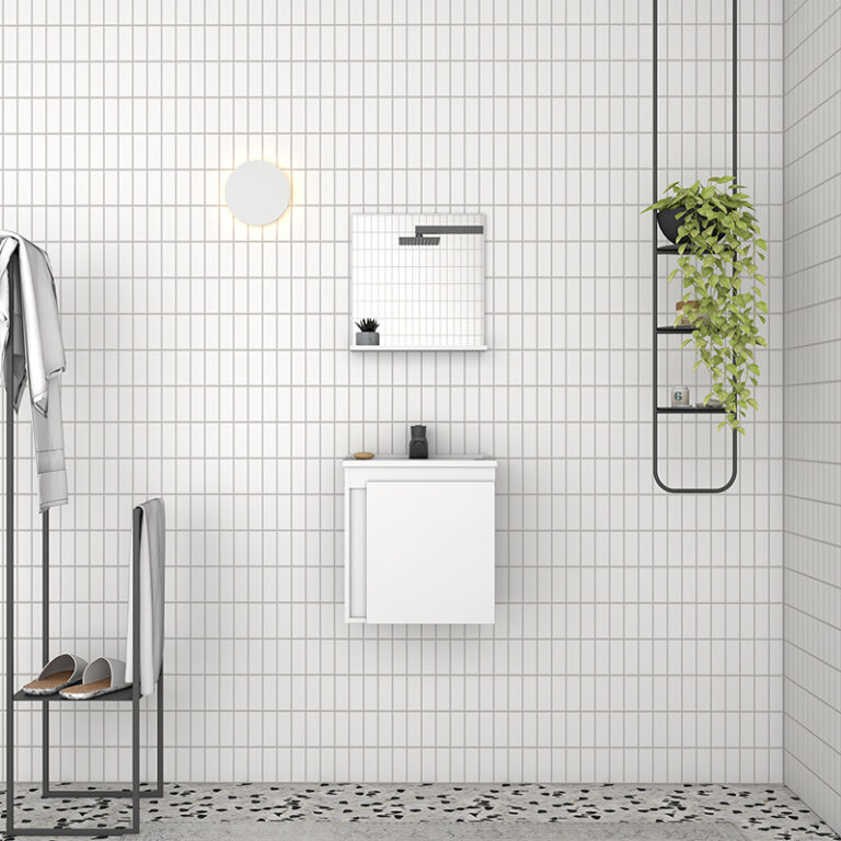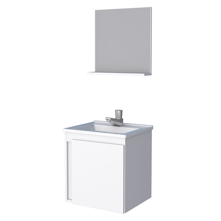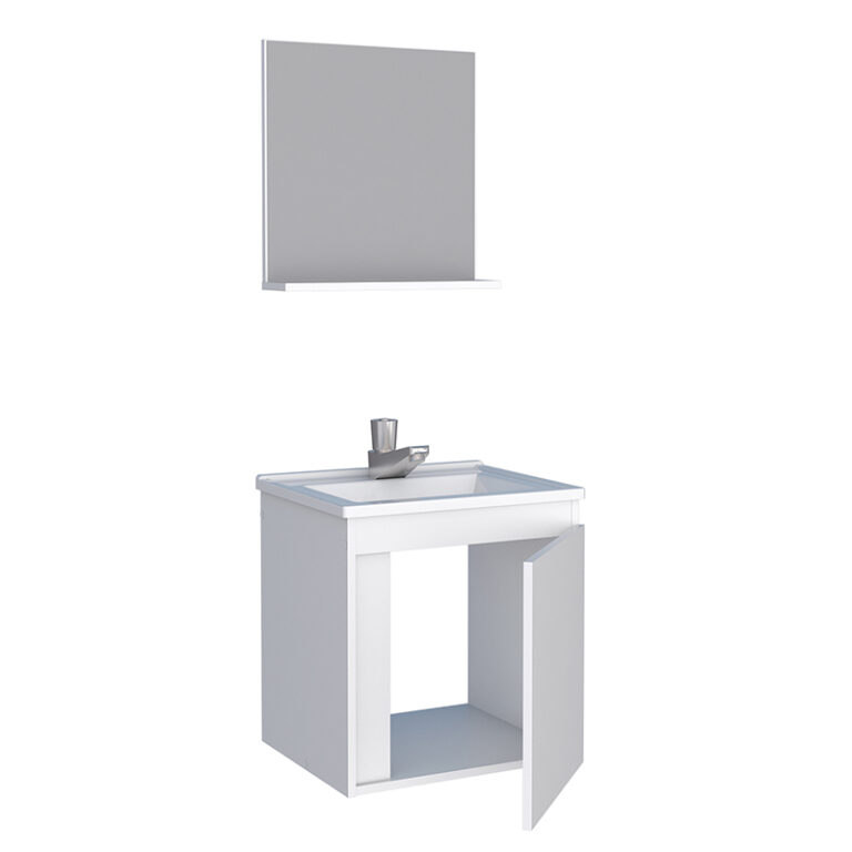 Mueble aereo para baño ONIX blanco con lavamanos de mármol sintético y espejo con repisa*NO INCLUYE GRIFERIA