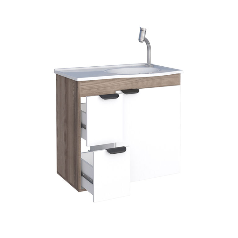 Mueble aereo para baño MARGARIDA blanco tamarindo con lavamanos de mÔrmol sintético y cajones con correderas telescópicas*NO INCLUYE GRIFERIA