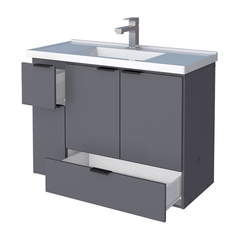 Mueble para baño ORQUIDEA 80 con lavamanos de mÔrmol sintético y cajones con correderas telescópicas.