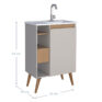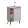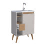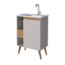 Mueble para baño LÓTUS 60 color nude con lavamanos de mármol sintético, cajón con correderas telescópicas y 04 patas de madera maciza.