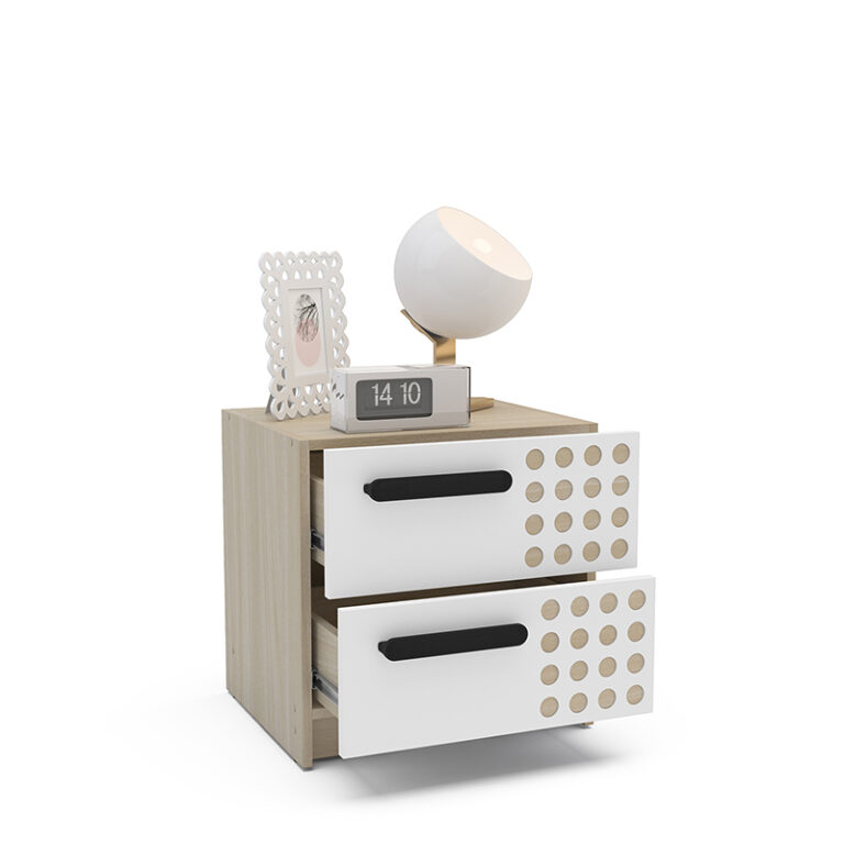 El Velador Domi 2 Cajones Vekka es el complemento perfecto para tu dormitorio. Con su diseño moderno y elegante, este velador de la reconocida marca VEKKA se convertirá en el protagonista de tu espacio.