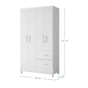 Materialidad : MDPEspesor : 12 mmColor : BLANCOLargo : 98 CMAncho : 47 CMAlto : 181 CMPeso : 44,95 KgRepisas : 3Cant Puertas : 4Cant Cajones : 6Material Manillas : PVCDificultad Armado : ALTO