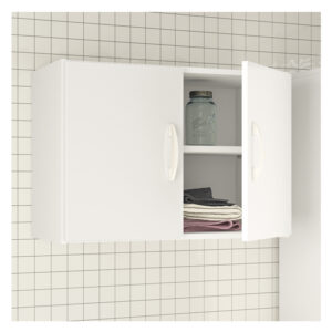 Estante mural aéreo de color blanco fabricado en MDF. Posee 2 puertas con bisagras metálicas y manillas de PVC, además de una repisa interior que permite optimizar el espacio para una mejor organización. De fácil armado e ideal para espacios reducidos al poder anclarse a la pared